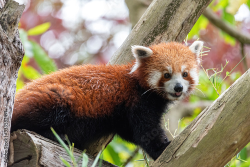 © peter, Fototapeta premium red panda sticking tongue out in a tree