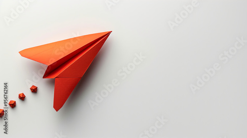 © Anatoli, Naklejka premium Red paper airplane flies close-up
