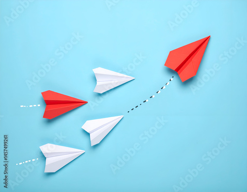 © Usama, Naklejka premium Red Paper Airplane Leading White Ones, Innovation, Success, Competition