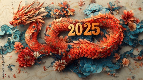 Naklejka premium Red paper dragon 2025 Chinese New Year design.