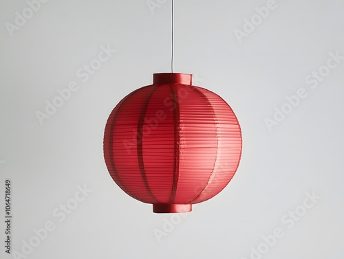 © paper later, Obraz premium Red Paper Lantern Hanging from a White Ceiling