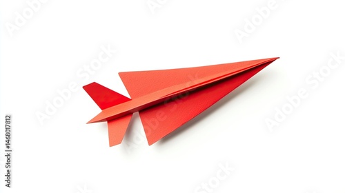 © Letterfall Std, Naklejka premium Red Paper Plane Take Flight with Ideas Soar on White.