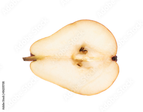 © exopixel, Fototapeta premium Red pear cut in half isolated
