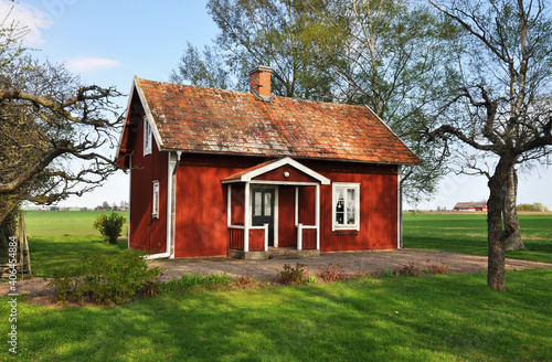 © ankihoglund, Obraz premium Red picturesque cottage in spring
