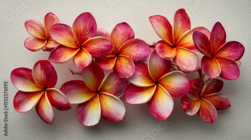 Naklejka premium Red Pink Yellow Plumeria Flowers Close Up