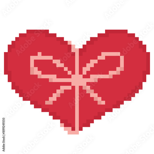 Obraz premium Red pixel art heart icon wrapped with a simple ribbon bow decoration