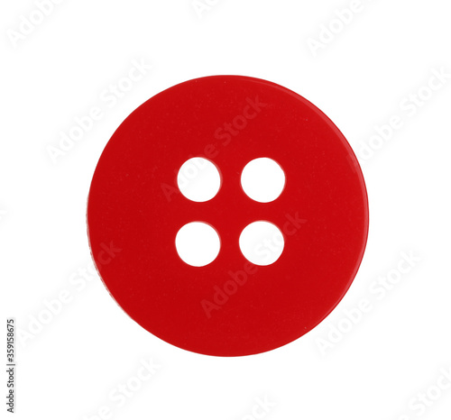 © New Africa, Fototapeta premium Red plastic sewing button isolated on white