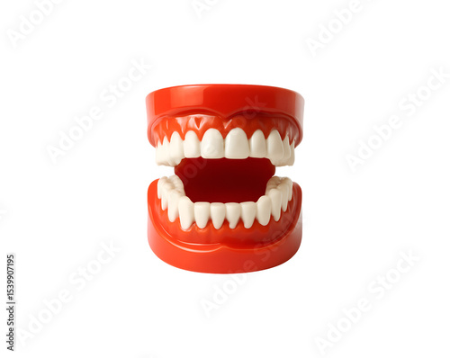 © DesignerKamran99, Obraz premium Red plastic teeth model isolated on transparent background