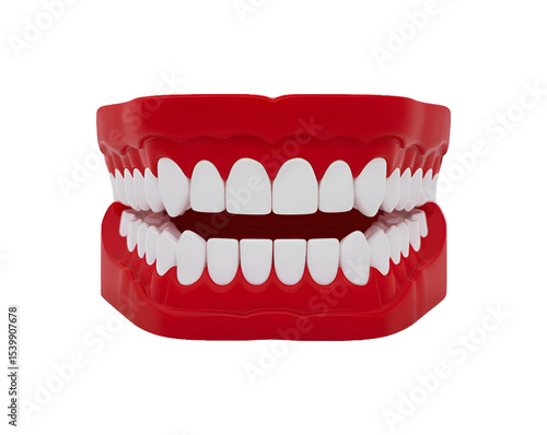 © DesignerKamran99, Obraz premium Red plastic teeth model isolated on transparent background