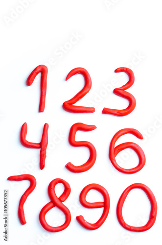 © fotofabrika, Obraz premium Red plasticine numbers on white background
