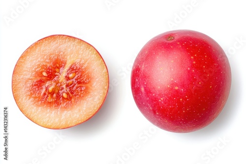 Fototapeta premium Red Plum, Halved and Whole