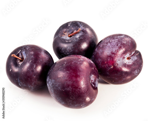 © Snowbelle, Obraz premium Red plums heap isolated on a white background.