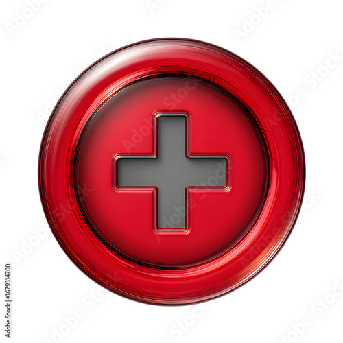 © ZanyZooms, Obraz premium Red Plus Sign Button 3d rendered, isolated on transparent background
