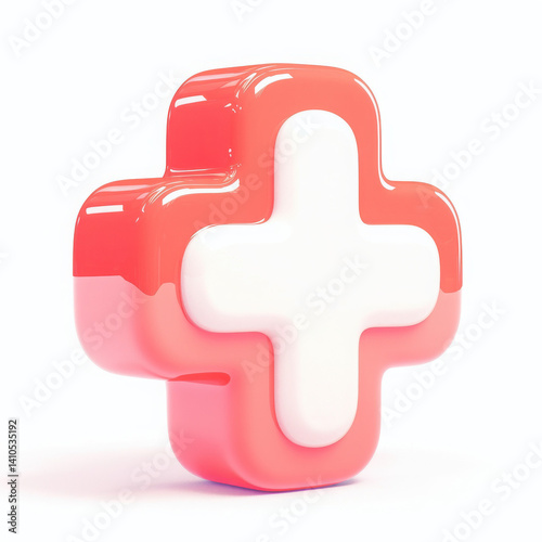 © CUTEX2 3D Studio, Obraz premium Red plus symbol on a white isolated background.