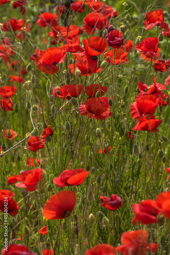 © Evdoha, Obraz premium red poppies among the green grass in the summer