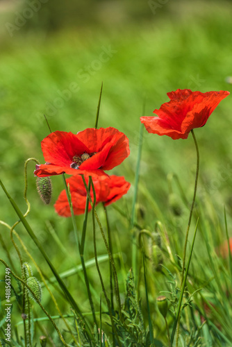 © Evdoha, Obraz premium red poppies among the green grass in the summer