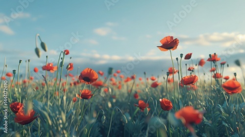 © Diyra - creations, Fototapeta premium Red Poppies Field Symbol of Remembrance