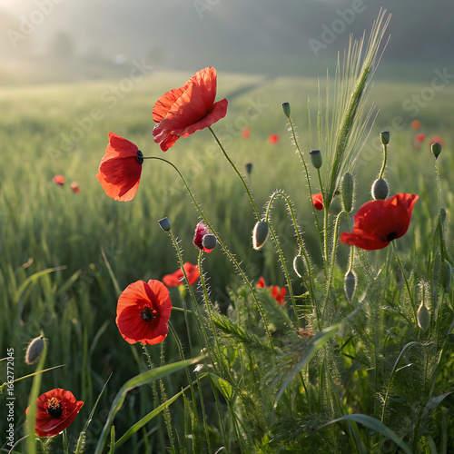 © Arham, Obraz premium red poppies flowers realistic composition