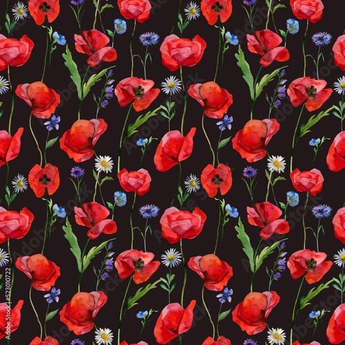 © MariiaMart, Fototapeta premium red poppies flowers seamless pattern