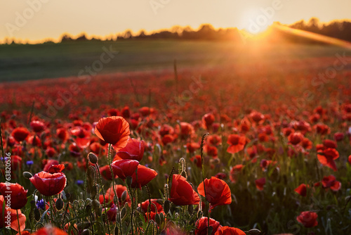 © vetre, Naklejka premium Red poppies in a poppies field. Remembrance or armistice day.