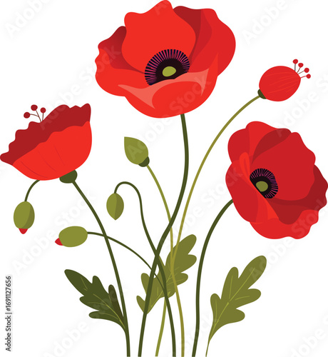 © Jannatul, Fototapeta premium Red poppies on transparent background