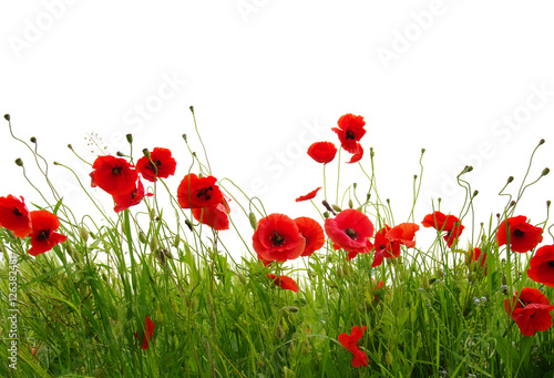 © Alekss, Obraz premium red poppies on white