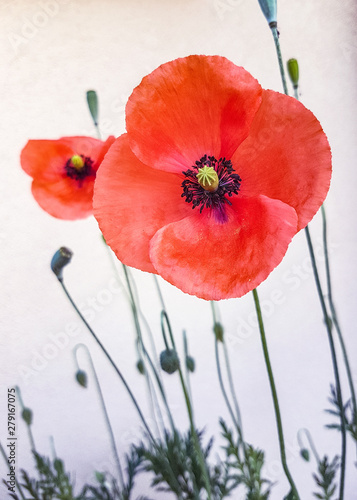 Fototapeta premium red poppies on white background