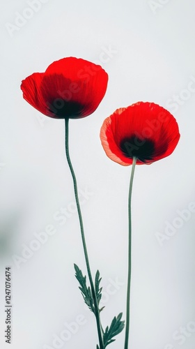 Fototapeta premium Red poppies serene white background