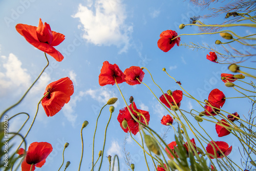 © sergejson, Obraz premium red poppies turning to the sky