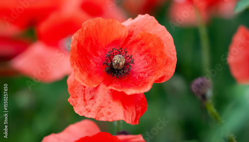 Obraz premium Red poppy. Blooming red meadow flowers close-up