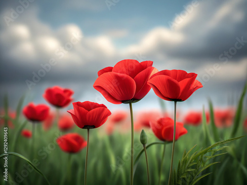 © Watcharakorn, Fototapeta premium red poppy field. poppy, field, flower, red, nature, spring, summer, flowers, meadow, poppies, plant, tulip, blossom, garden, bloom, beauty, grass, sky, blue, color, season, tulips, rural, landscape, f