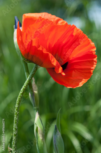 Fototapeta premium red poppy flower and iris flower buds