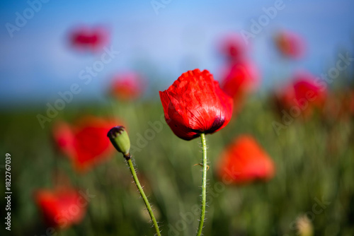 © Zoran Jesic, Obraz premium Red poppy flower blooming in a green field