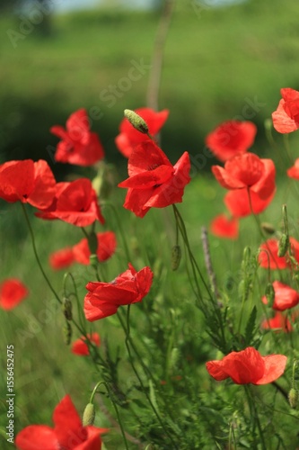 © Nastyusha666, Obraz premium Red poppy flowers in a green field