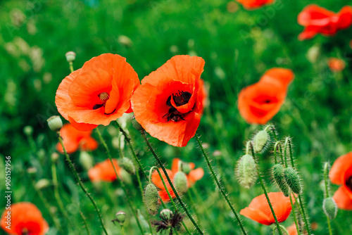 © ir1ska, Obraz premium Red poppy flowers in the garden close-up