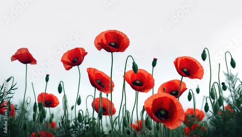 © Cyber Shutter, Obraz premium Red poppy flowers isolated on white background for summer panorama