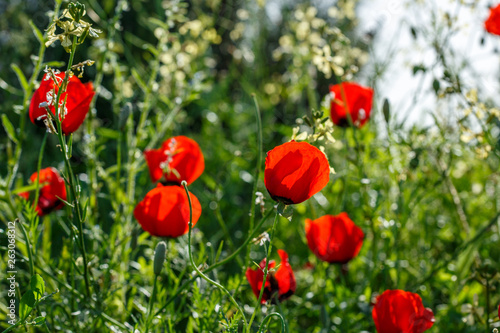 Fototapeta premium red poppy flowers. macro. small GRIP