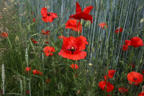 © leomalsam, Fototapeta premium Red poppy in a field among wheat