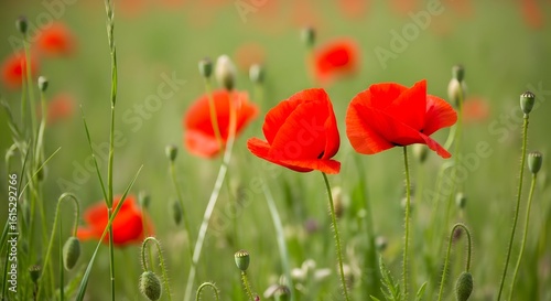 © JNCK DESIGN, Fototapeta premium Red Poppy in Green Field