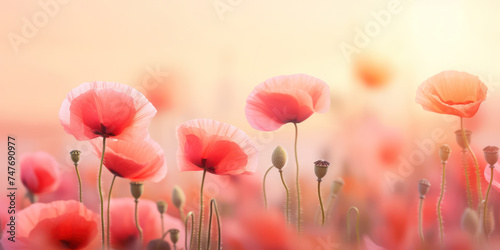 Fototapeta premium Red Poppy Meadow: Summer's Floral Beauty in a Wild Field