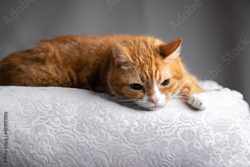 Fototapeta premium Red purebred beautiful cat at home.