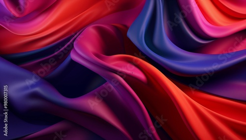© goodday, Fototapeta premium red purple yellow green blue fabric wave texture