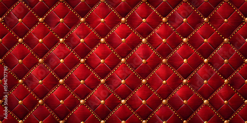 Obraz premium Red Quilted Fabric with Gold Diamond Stitching and Decorative Buttons"