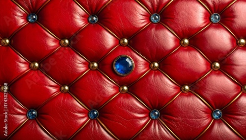 © Moy, Obraz premium Red quilted leather upholstery with blue gems