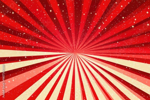 Fototapeta premium Red radiating burst background with stars