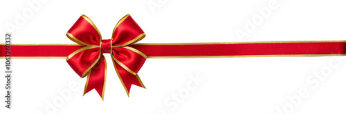 © Photonix, Fototapeta premium Red ribbon and bow with golden border for Christmas, Valentine, Anniversary, Birthday gift, present and decoration isolated on a transparent background