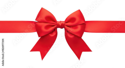 Fototapeta premium Red ribbon bow decoration isolated on transparent background png
