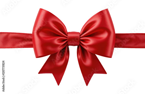 Naklejka premium Red Ribbon Bow Isolated on Transparent PNG Background.