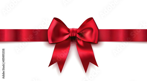 © e, Fototapeta premium red ribbon bow on the straight ribbon for gifts isolated on white background