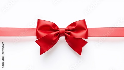 © Marina, Fototapeta premium Red ribbon bow on white background